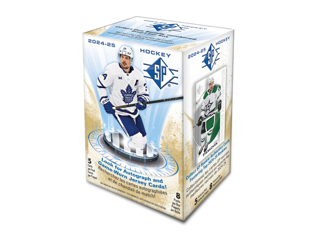 2024–25 Upper Deck SP Hockey Blaster Box prináša elegantný SP zážitok pre zberateľov, ktorí milujú moderný dizajn kariet, zaujímavé inserty a lov podpisov. Séria SP je známa svojím prémiovým vzhľadom a zberateľským charakterom – a táto sezóna nie je výnimkou.