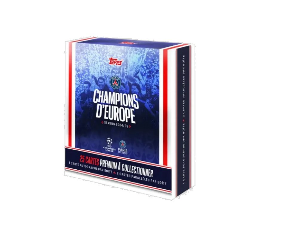 Discover the 2024/25 Topps Paris Saint-Germain: Champions D'Europe Box – the official collector’s edition celebrating PSG’s European triumph. Each box includes exclusive cards, star player portraits, limited editions, and unique inserts. Perfect for collectors, Paris fans, and football enthusiasts.