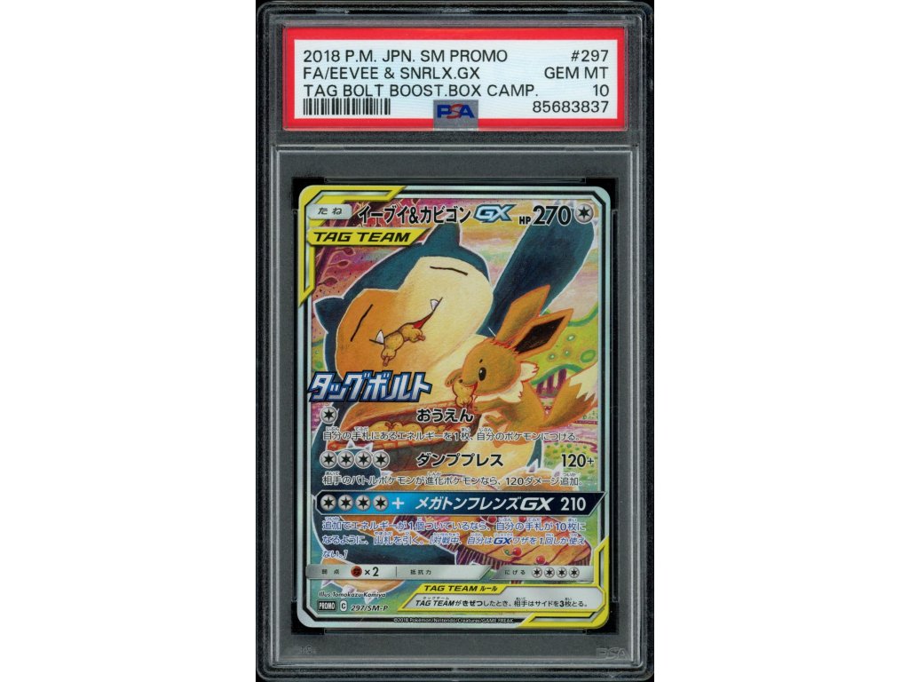 - 2018 Tag Bolt Booster Box Campaign Full Art Eevee & Snorlax Gx #297 PSA 10