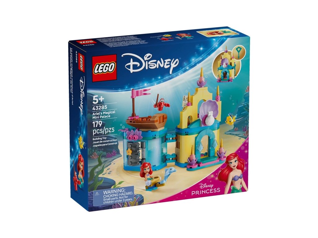 LEGO® Disney 43285 Ariel’s Magical Mini Palace is a portable micro world inspired by Disney’s The Little Mermaid, featuring a small palace, cave, and figures of Ariel, Flounder, and Sebastian. The set encourages creative play and is ideal for children aged 5 and up.