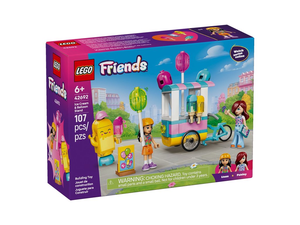 LEGO® Friends 42692 Ice Cream & Balloon Stand is a cheerful set featuring a colorful ice cream and balloon stand where mini-doll characters can enjoy tasty desserts and fun accessories. It encourages creative play and the development of children's imaginations through interactive scenes.