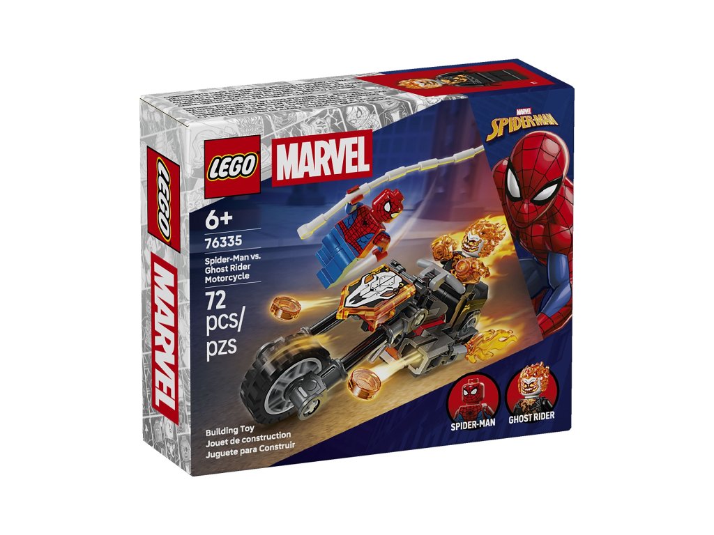 LEGO® Marvel 76335 Spider-Man vs. Ghost Rider Motorcycle brings an exciting showdown between Spider-Man and Ghost Rider on his fiery motorcycle. The set supports dynamic play and action scenes with minifigures.