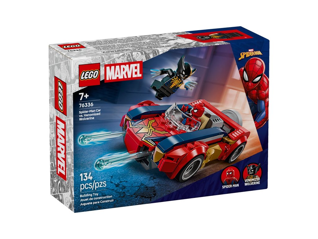 LEGO® Marvel 76336 Spider-Man Car vs. Venomized Wolverine is a superhero building set with 134 pieces that lets fans create battles between Spider-Man and the exclusive venomized Wolverine minifigure making its first appearance in LEGO® Marvel merchandise. The set features Spider-Man’s iconic car with a rear trigger to launch two spring shooters at the front, 2 minifigures, weapons and themed accessories for authentic action play. A perfect gift for young superheroes, Marvel movie fans and LEGO® Marvel collectors, encouraging creativity and epic story creation.
