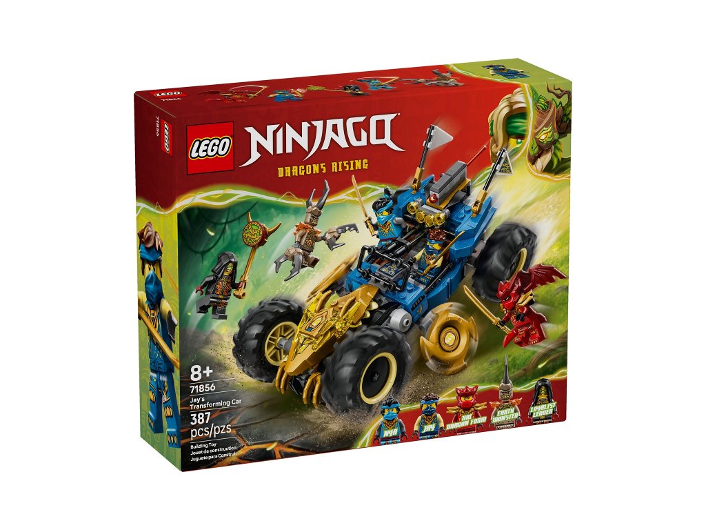 LEGO® NINJAGO® 71856 Jay's Transforming Car delivers fast-paced action missions full of ninja adventures. The transformable vehicle enables dynamic play and creative battles.