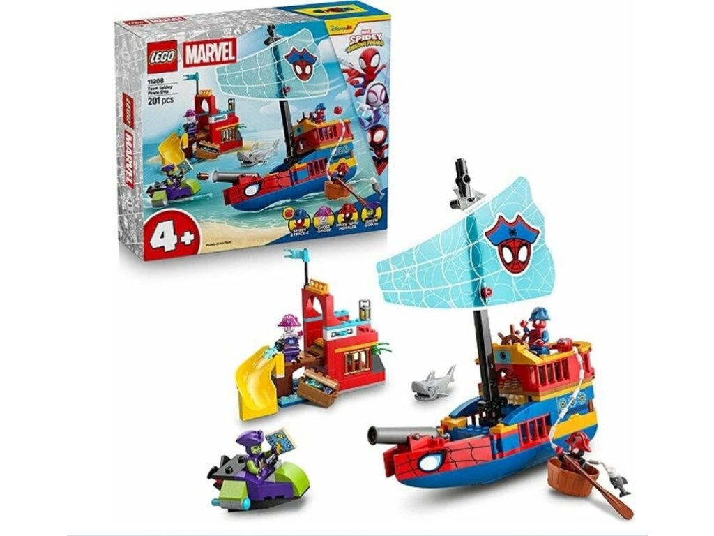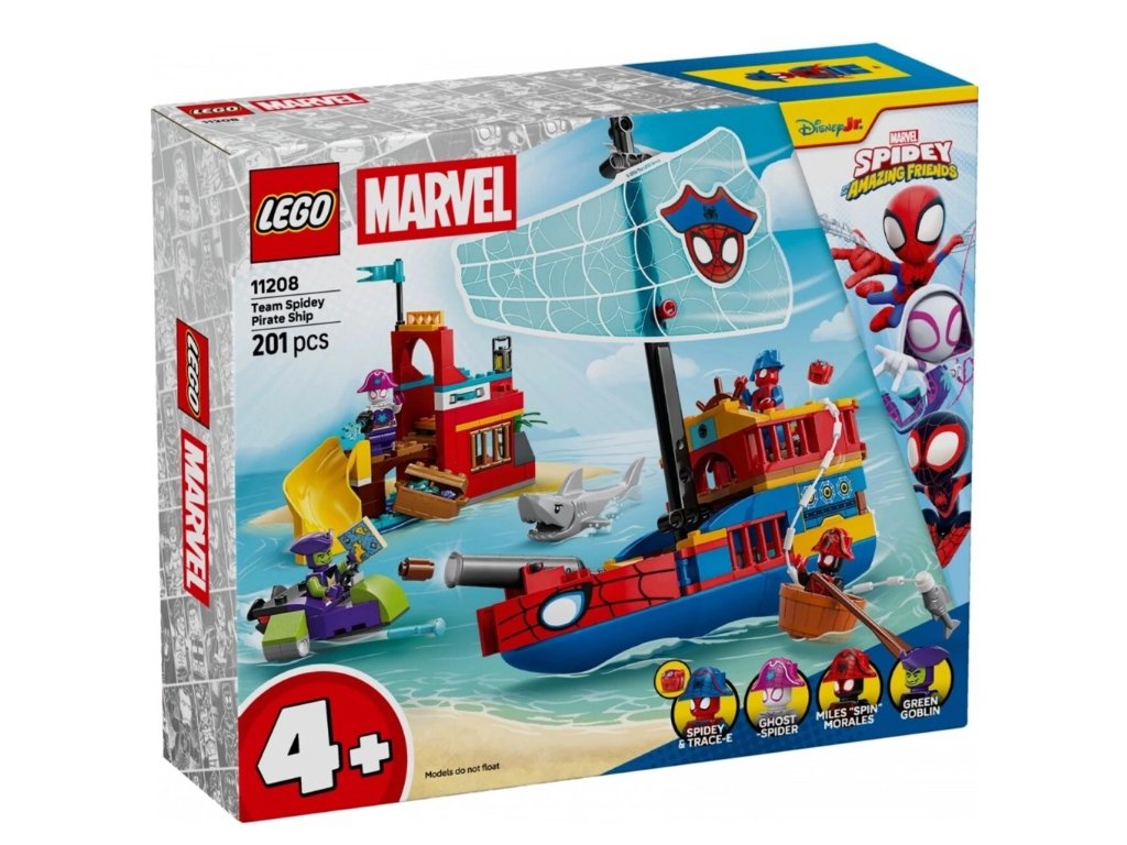 LEGO® ǀ Marvel Spider-Team Pirate Ship (11208) – 201 pieces for children 4+, includes Spidey, Ghost-Spider, Miles “Spin” Morales, Green Goblin, Trace-E robot, pirate ship, island, and superhero play.