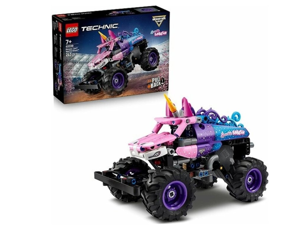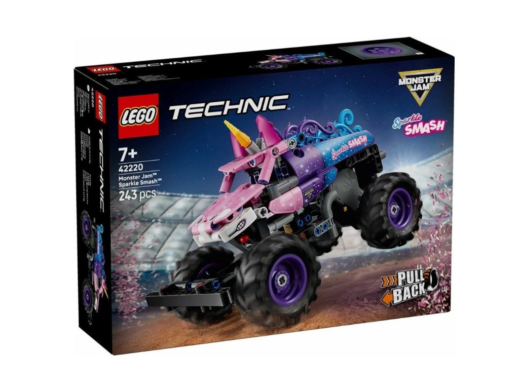 LEGO® Technic Monster Jam Sparkle Smash with pull-back function for kids 7+, perfect for monster truck and unicorn fans.