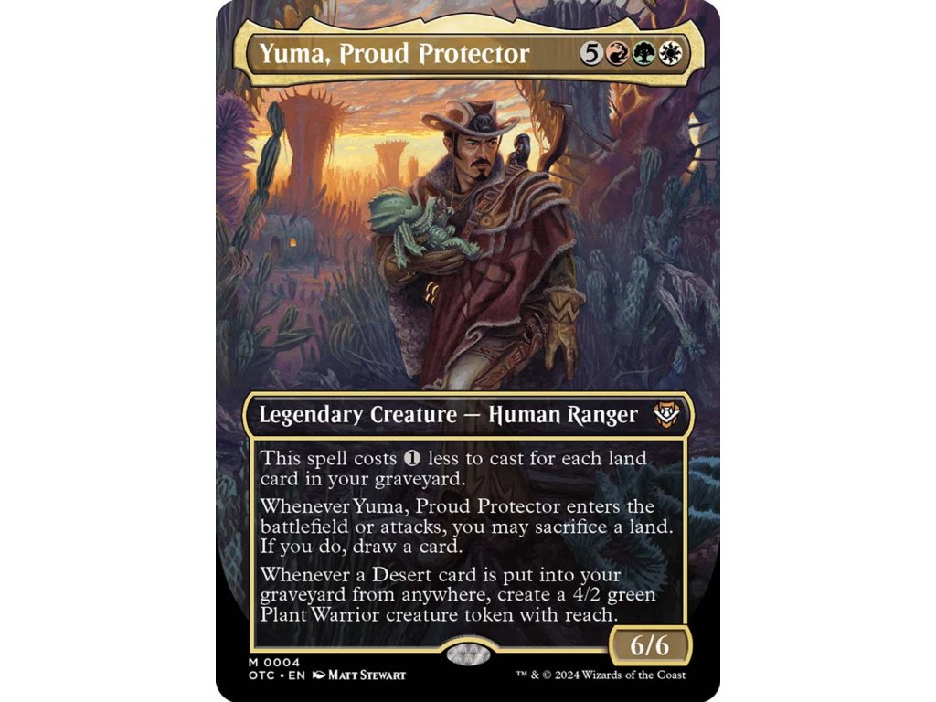 But just as a shadow can exist only where there is light, criminals can exist only where there are laws. And this is where Yuma, Proud Protector enters the scene. As one of only two rangers in all of Thunder Junction, he carries a heavy responsibility: protecting the land and the people who live in it—especially the Plantfolk (yes, that really does mean cacti).
