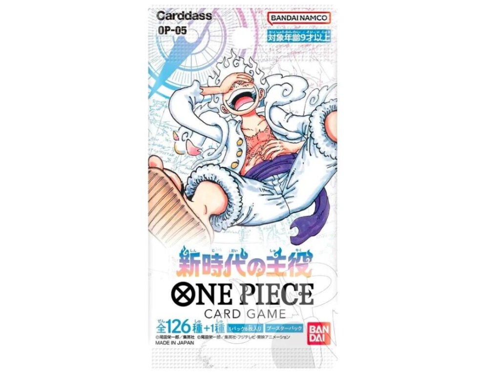 One Piece TCG Awakening of the New Era Booster Pack (Japanese version) is a booster pack from the fifth core expansion of the trading card game released by Bandai and based on the popular anime and manga One Piece. The OP‑05 Awakening of the New Era set introduces new mechanics, multicolor Leader cards, and the debut of Gear 5 form of Monkey D. Luffy, while also featuring characters such as Sabo, Koala, and Enel. Each booster pack contains 6 random cards of different rarities including Leader, Common, Uncommon, Rare, Super Rare, and Secret Rare cards, offering players and collectors the chance to expand decks, explore new strategies, and obtain authentic Japanese One Piece TCG cards.