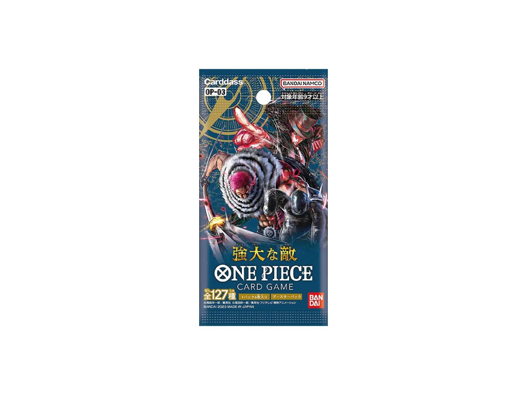 One Piece TCG Pillars of Strength Booster Pack (Japanese version) is a booster pack from the third set of the trading card game released by Bandai and based on the popular anime and manga One Piece. The Pillars of Strength (OP-03) set focuses on powerful enemies and key story arcs of the series and includes cards featuring fan-favorite characters such as Charlotte Katakuri, Rob Lucci, Donquixote Doflamingo, and Roronoa Zoro. Each booster pack contains a random selection of cards of different rarities including Leader, Common, Uncommon, Rare, Super Rare, and Secret Rare cards. It is an ideal choice for players and collectors who want to expand their decks, discover new strategies, and obtain authentic Japanese edition cards from the One Piece TCG.