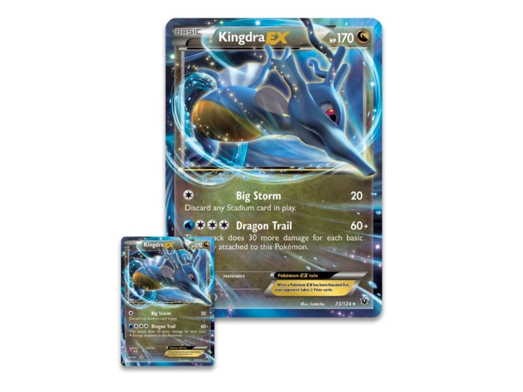 Featuring a foil promo Kingdra‑EX card and an oversized foil version, this set also includes 4 Pokémon TCG booster packs to expand your collection with cards from various expansions.