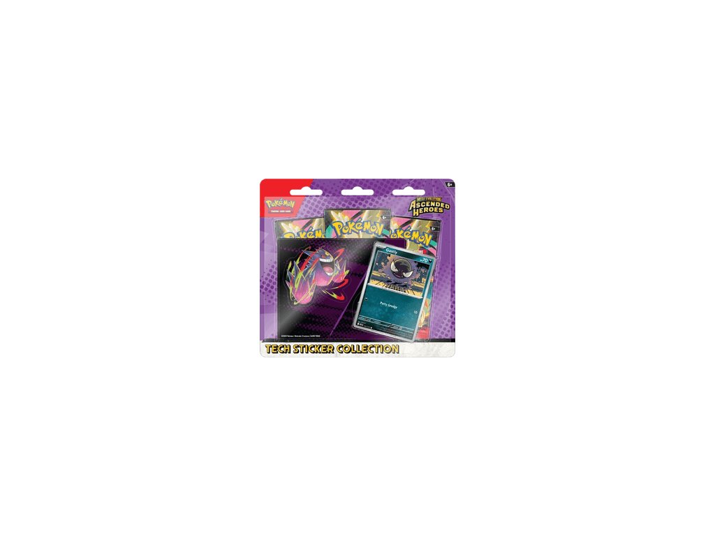 Pokémon TCG – Ascended Heroes Gastly Tech Sticker Collection is a themed collectible product from the Ascended Heroes edition, which contains an exclusive foil promo card of Gastly, an original tech sticker sheet with Gastly and Mega Gengar motifs, and three official Pokémon TCG booster packs from this expansion. This set is ideal for players who want to strengthen their game decks, as well as collectors looking for unique promo content and visually appealing additions to their collections. Suitable as a gift for Ghost Pokémon fans, it offers the chance to obtain rare and holographic cards, the possibility to personalize electronics or collector's albums with stickers, and guaranteed product authenticity with fast and secure delivery from a verified Pokémon TCG store.