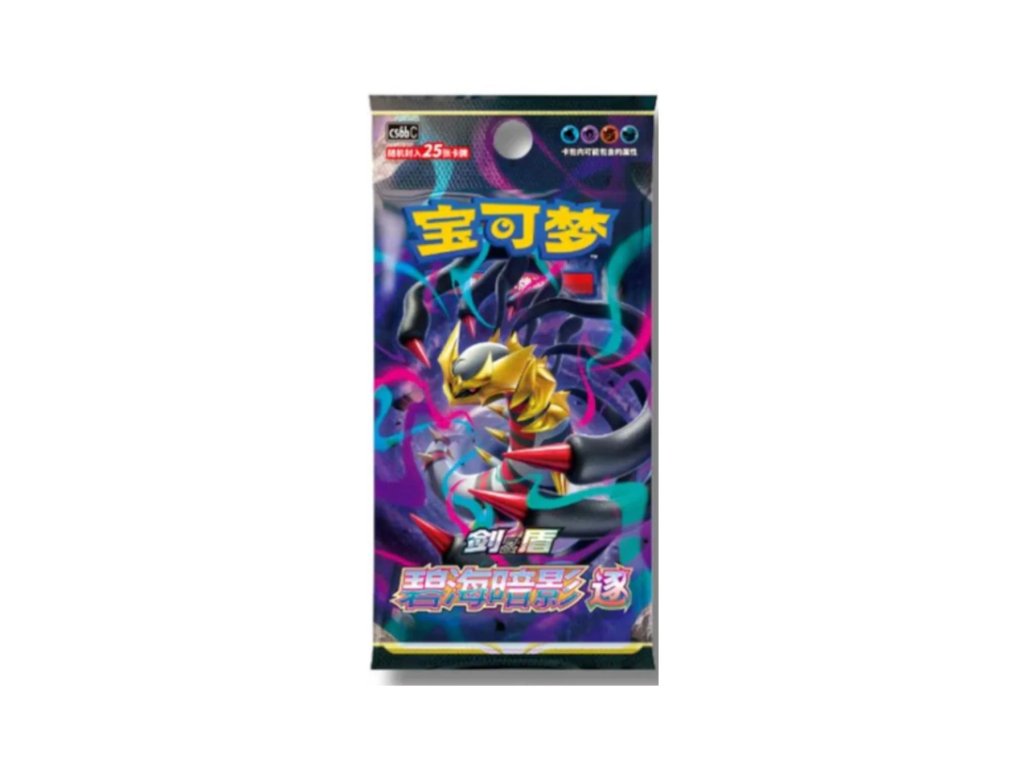 The Azure Shadow “Giratina” Jumbo Booster Pack (Chinese) is a premium Pokémon TCG product from the Shadow of the Blue Sea (also known as Azure Shadows) set, released in Simplified Chinese for the Mainland China market. This jumbo booster contains 25 cards, significantly more than standard slim packs, giving collectors and players a greater card count and better chances at rare pulls.
