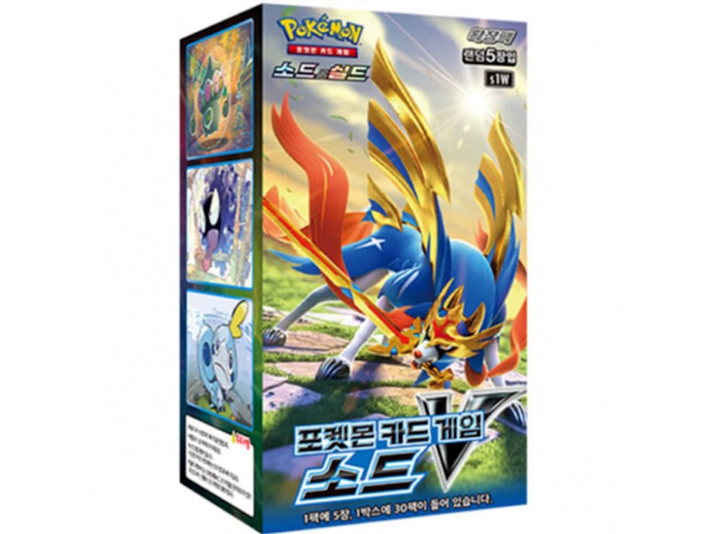 The Pokémon TCG Sword & Shield – Sword V Booster Box in Korean version features powerful Pokémon V and exciting battles from the Galar region. Perfect for collectors and players alike.
