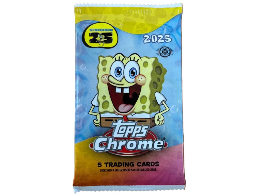 Each booster pack contains 5 premium cards from the SpongeBob Chrome 25th Anniversary set.