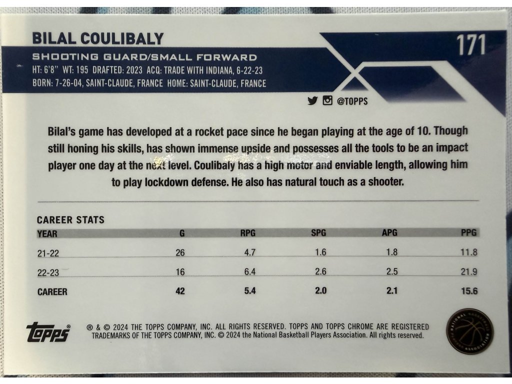 Topps Chrome - Bilal Coulibaly - Limit 138/199 - Rookie