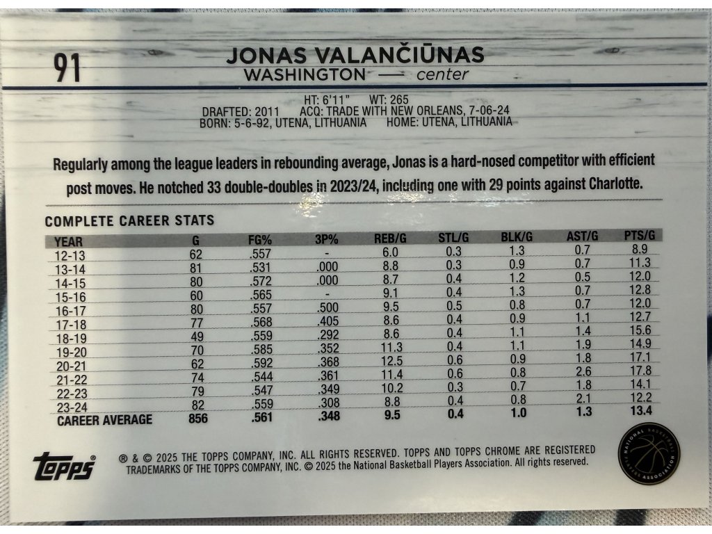 Topps Chrome - Jonas Valančiūnas - Limit 16/50 - Geometric