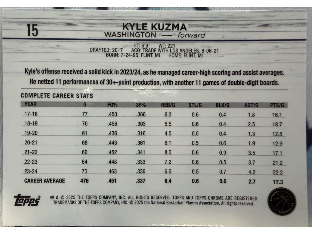Topps Chrome - Kyle Kuzma - Limit 34/99 - Geometric