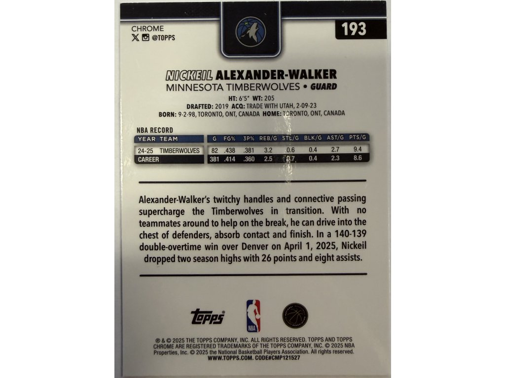 Topps Chrome - Nickeil Alexander-Walker - Limit 168/275 - Raywave