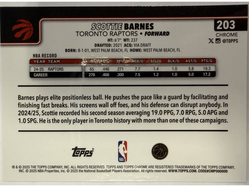 Topps Chrome - Scottie Barnes - Limit 264/275 - Raywave