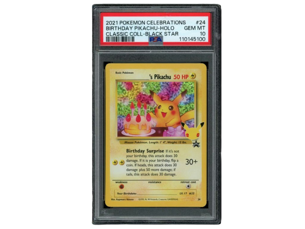 Každý box obsahuje jednu (1) hodnotenú Pokémon kartu s obľúbenou elektrickou myšou všetkých fanúšikov – Pikachu! Tento produkt je doslova nabitý Pikachu kartami, ktoré pochádzajú z celej histórie Pokémon TCG, ako aj zo sérií Topps a Pokémon Center.