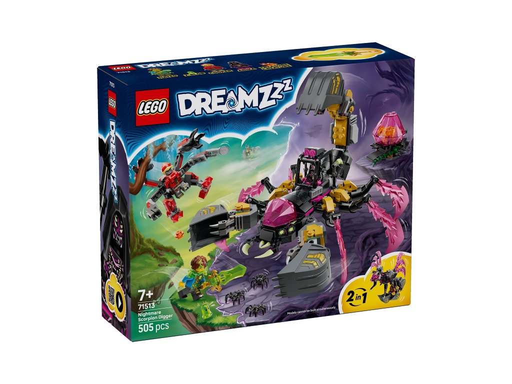 LEGO® Dreamzzz 71513 Nightmare Scorpion Digger je akčná stavebnica zo série LEGO Dreamzzz, ktorá kombinuje temnú snovú atmosféru s mechanickým dizajnom škorpióna. Model ponúka pohyblivé končatiny, funkčný vrták, detailné spracovanie a tematické doplnky pre napínavé súboje dobra a zla. Súčasťou stavebnice sú minifigúrky, ktoré podporujú rozprávanie príbehov, kreativitu a dobrodružnú hru pre deti aj fanúšikov LEGO.