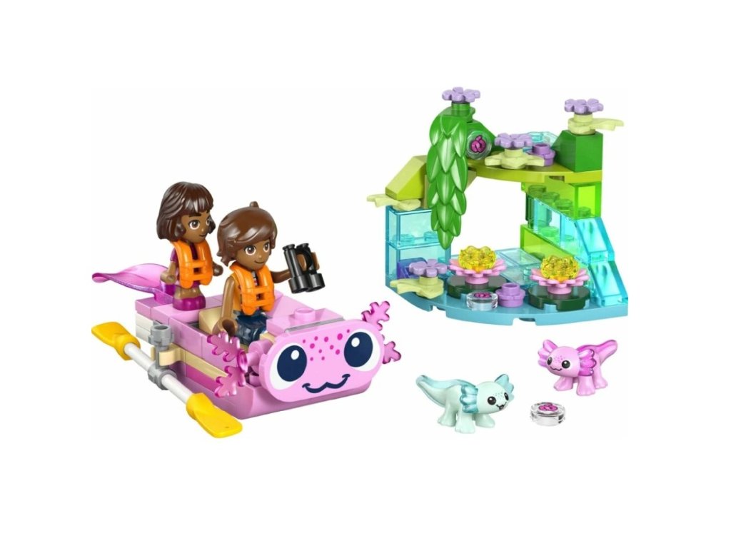 Roztomilá LEGO® Friends stavebnica s axolotlovou loďou pre deti od 5 rokov, ideálna na kreatívne rozprávanie príbehov.