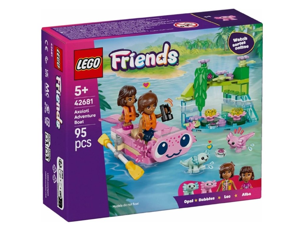 LEGO® Friends Dobrodružstvá na axolotlovej lodi (42681) je milá stavebnica pre dievčatá a chlapcov od 5 rokov, ktorí milujú zvieratá a fantazijné hry.