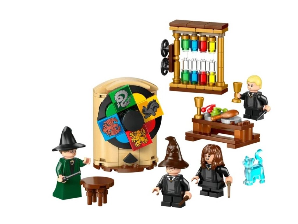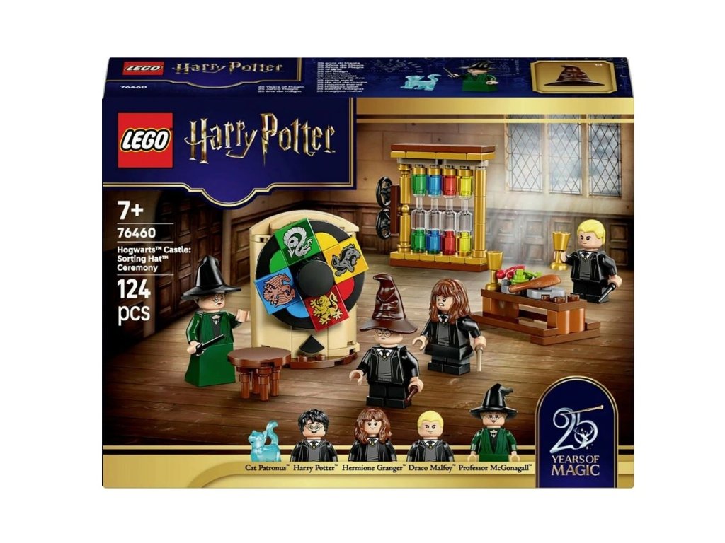 Stavebnica k 25. výročiu LEGO® Harry Potter™ obsahuje Triediaci klobúk s otočným triediacim kolesom, ktoré rozhodne o fakulte študentov. Súčasťou sú 4 minifigúrky – profesorka McGonagallová, Harry Potter, Hermiona Grangerová a Draco Malfoy – každá s prútikom.