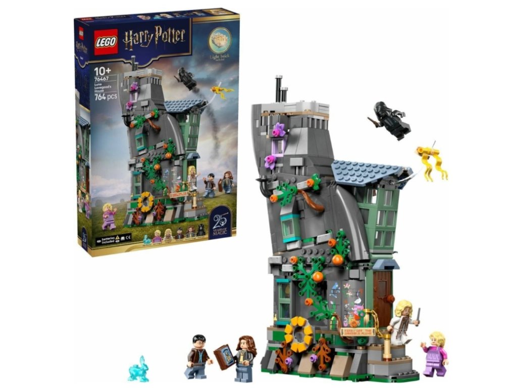Preskúmajte výstredný a očarujúci svet Lovegoodovcov s úplne prvým LEGO® Harry Potter™ modelom domu Luny Lovegoodovej (76467). Tento set s 764 dielikmi umožní deťom od 10 rokov oživiť kúzelné scény z filmu Harry Potter a Dary smrti, vrátane kuchyne, tlačiarne Xenophiliusa a Luninej izby.
