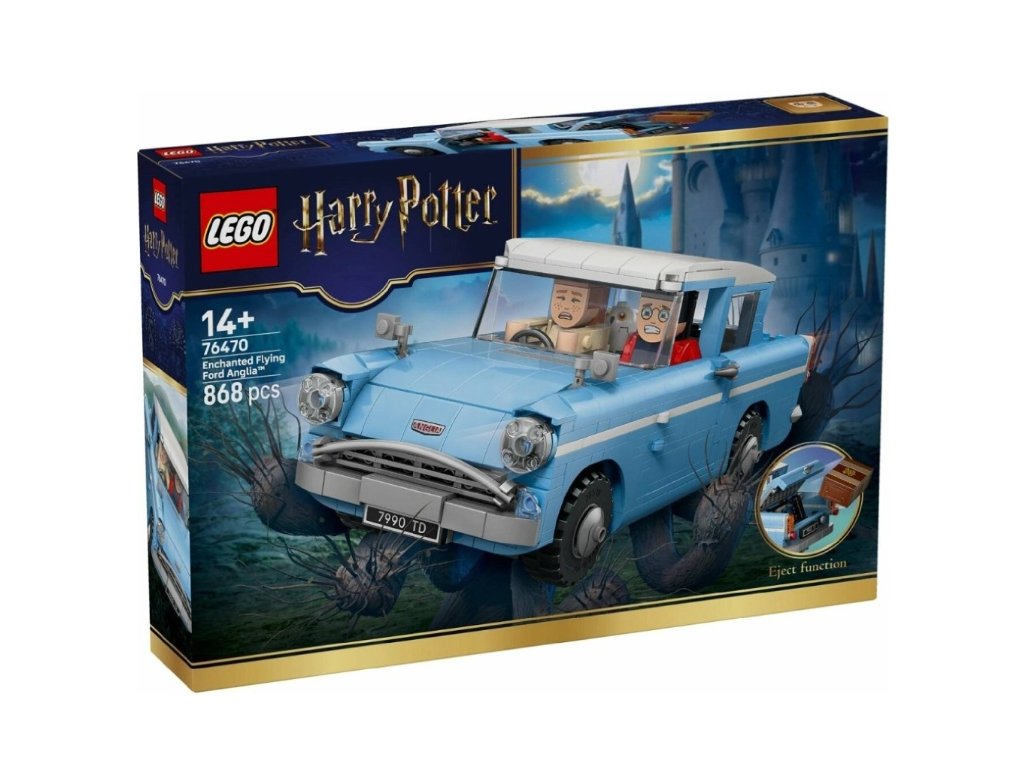 Vložte čaro legendárneho auta rodiny Weasleyovcov do rúk malých čarodejníkov, čarodejníc a muklov s LEGO® Harry Potter™ stavebnicou Kúzelné lietajúce auto Ford Anglia™ (76470).