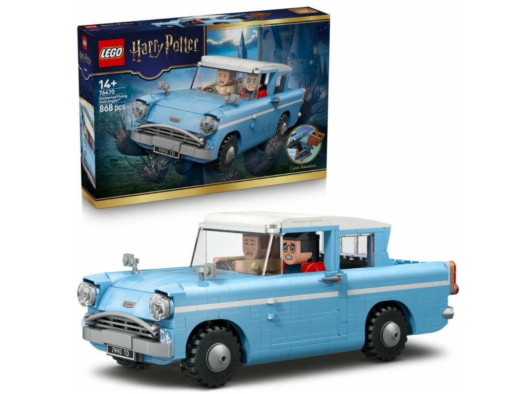 LEGO® Harry Potter™ Kúzelné lietajúce auto Ford Anglia™ – ikonický model s magickými funkciami a 3 postavami pre fanúšikov od 14 r.