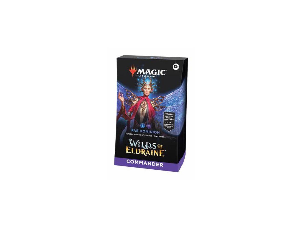 Magic: The Gathering – Wilds of Eldraine – Commander Deck: Fae Dominion je prefíkaný a zákerný Commander balíček postavený okolo vílích dvorov sveta Eldraine. Je určený pre hráčov, ktorí majú radi kontrolu tempa hry, nečakané interakcie a postupné ovládnutie stola – presne v duchu manipulátorskej povahy Fae.
