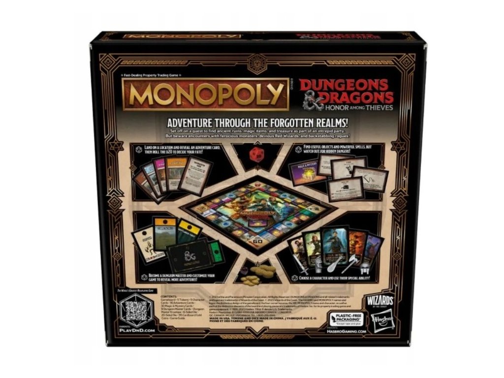 Ponorte sa do sveta mágie, pokladov a nebezpečných príšer s touto jedinečnou stolovou hrou, ktorá spája klasickú Monopoly s dobrodružstvami Dungeons & Dragons. Preskúmajte Forgotten Realms, bojujte s krutými príšerami, vyhýbajte sa zákerným červeným čarodejníkom a zbierajte mocné kúzla a poklady.