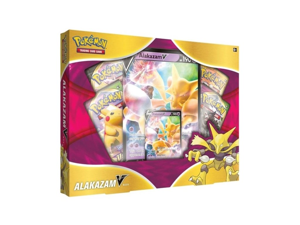 Pokémon TCG Alakazam V Box je špeciálny zberateľský set, ktorý obsahuje kartu Alakazam V a ďalšie populárne Pokémon karty.