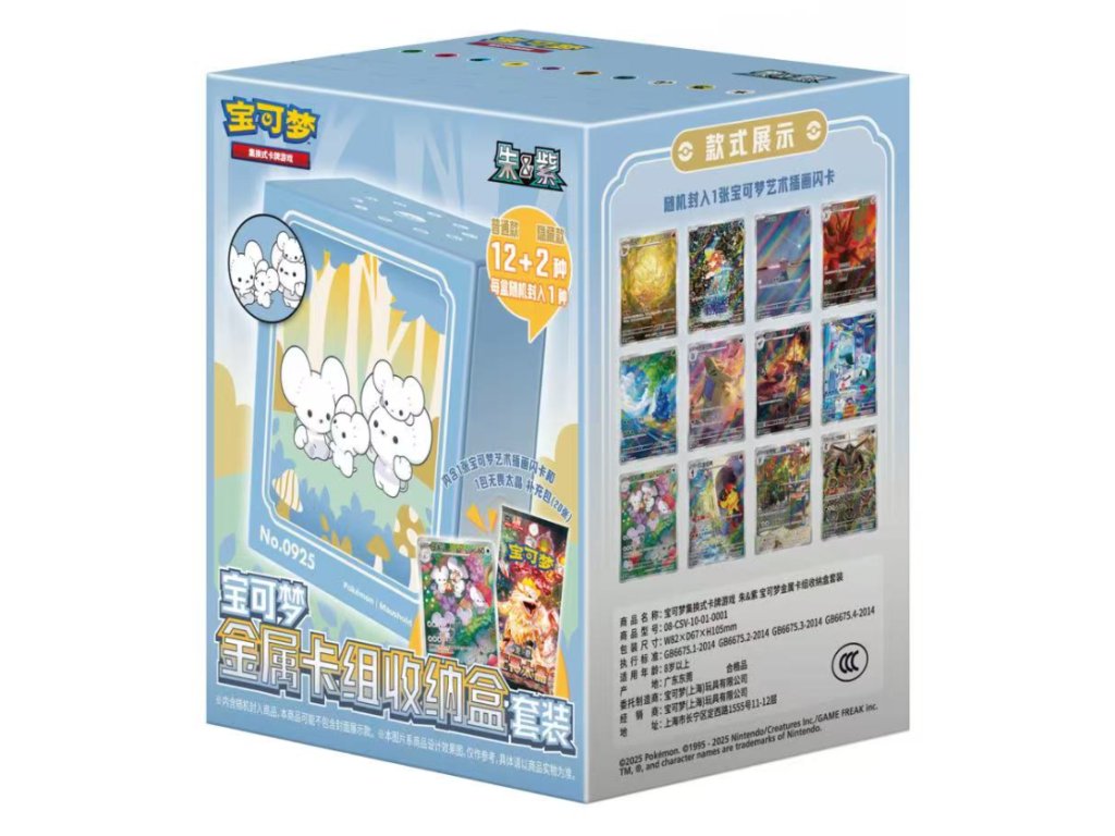 Pokémon TCG: Illustration Rare Metal Deck Box (Simplified Chinese) je zberateľský blind box, ktorý obsahuje náhodne vybranú illustration rare promo kartu z celkovo 14 variant – 12 bežných a 2 secret verzií.