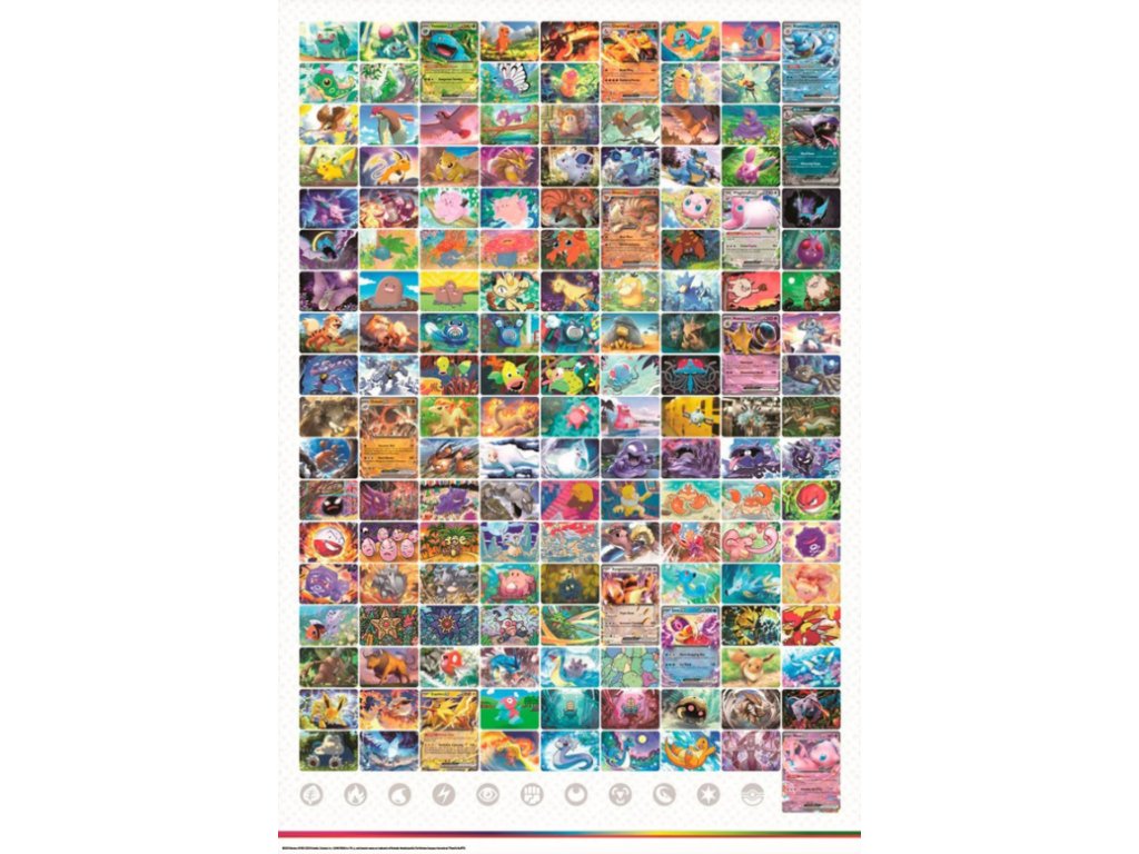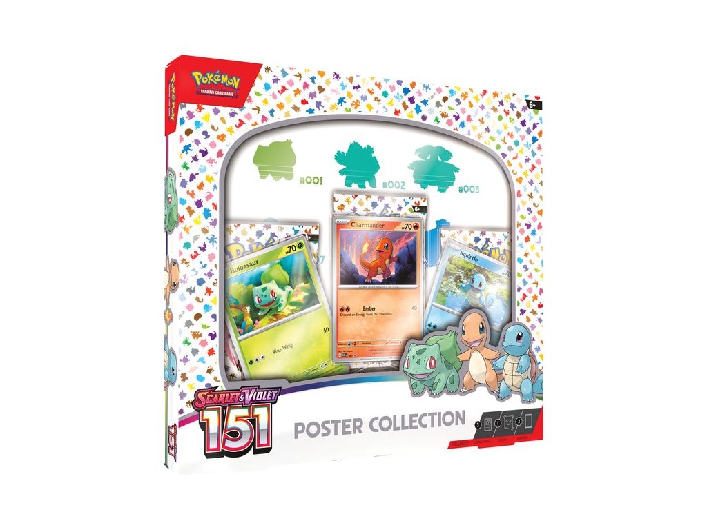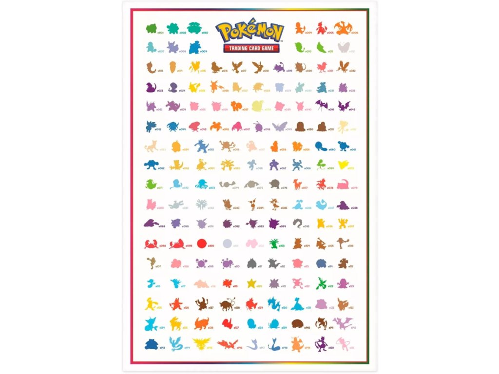 - 1 Obojstranný plagát s tématikou Scarlet & Violet - 151, na ktorom sú všetci Pokémoni z prvej generácie