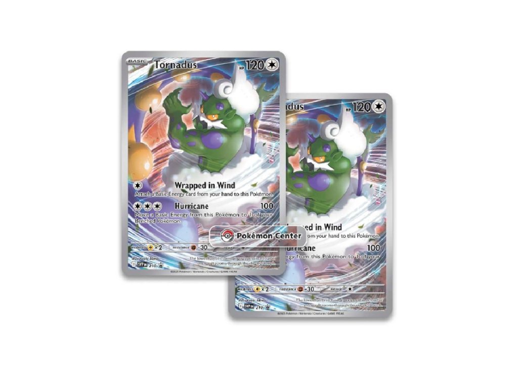 1 full-art promo kartu s holografickou fóliou s Tornadusom a logom Pokémon Center