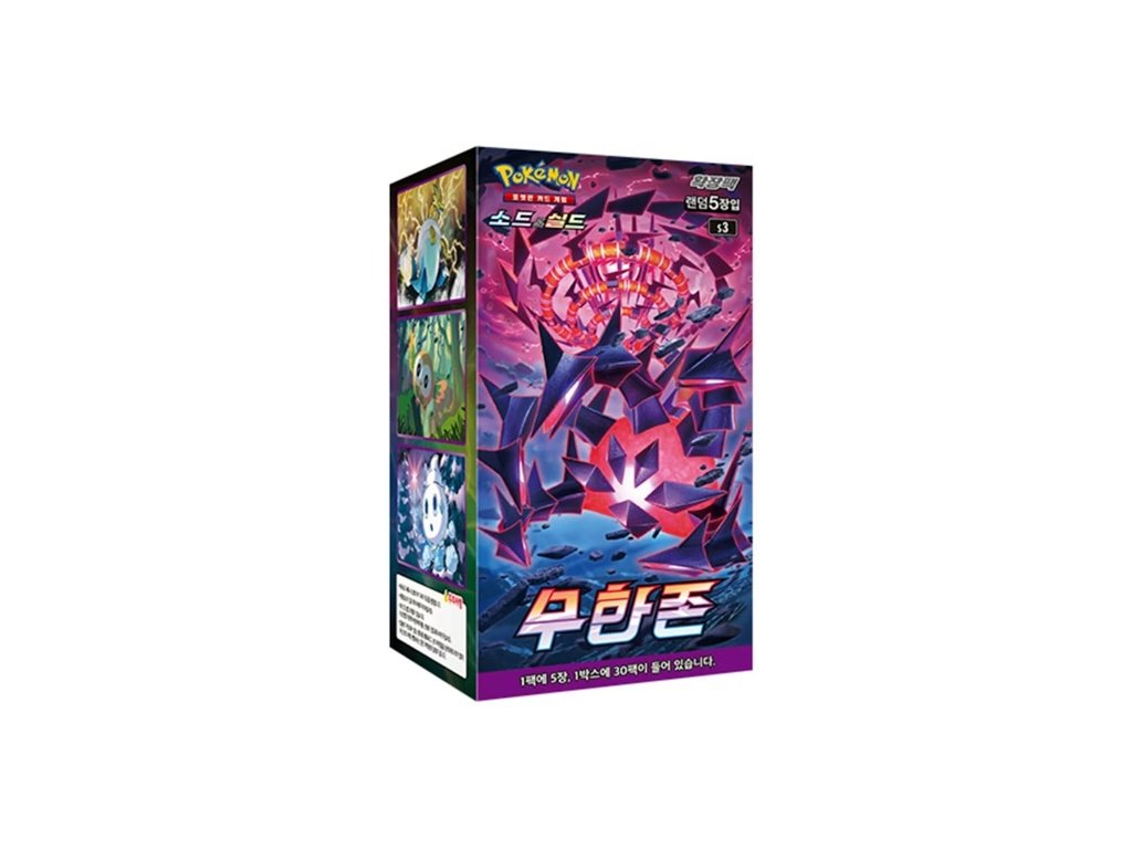Pokémon TCG Sword & Shield – Infinity Zone Booster Box (kórejský) obsahuje boostre zo série Infinity Zone, známej ako kórejská verzia setu Darkness Ablaze. Set sa zameriava na Pokémonov typu Darkness a ponúka šancu získať silné karty ako Eternatus V a Eternatus VMAX, Pokémonov V, VMAX a hodnotné tréner karty. Kórejská verzia je obľúbená medzi zberateľmi vďaka kvalitnej tlači, autentickému dizajnu kariet a priaznivej cene, čo z nej robí ideálny Booster Box na rozšírenie zbierky alebo stavbu herných balíčkov.