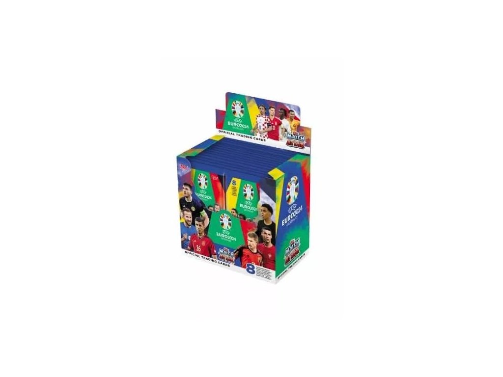 Topps Match Attax Official Licensed Euro 2024 Booster Box je oficiálny box futbalových zberateľských kariet z edície Match Attax EURO 2024 od Topps, obsahujúci 36 balíčkov s kartami na zbieranie a výmenu. Tento box je určený pre fanúšikov futbalu aj zberateľov, ktorí chcú získať mnoho kariet naraz a zvýšiť šancu na vzácne inserti a paralely.