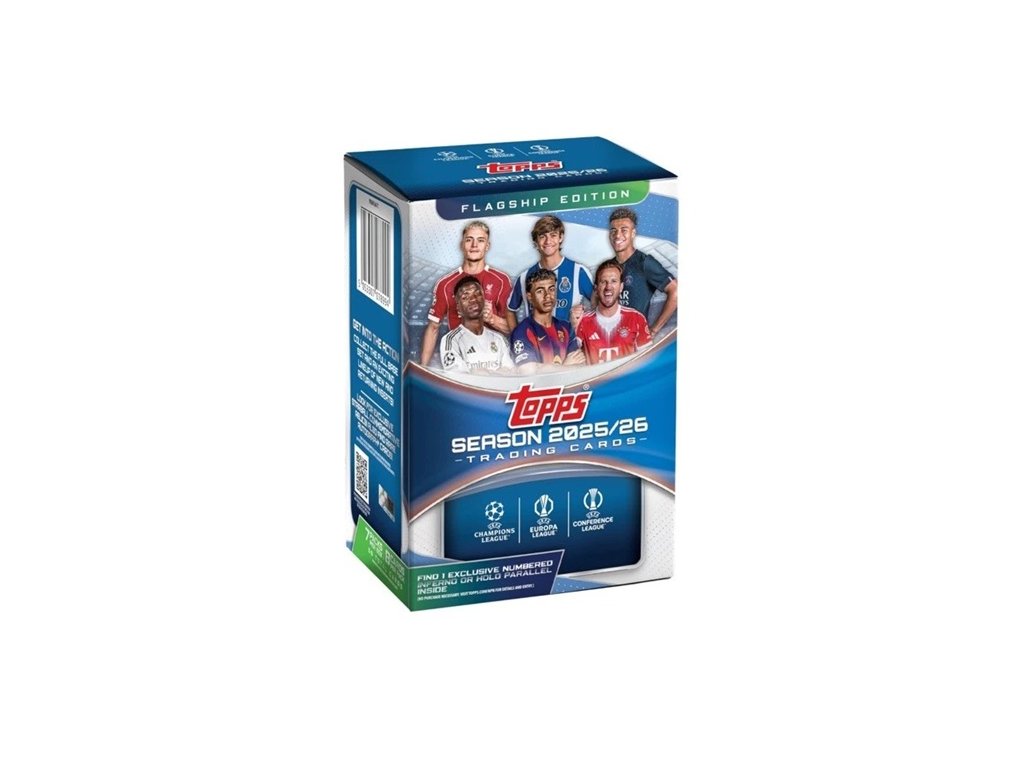 Topps 2025/2026 Flagship Edition Blaster Box prináša klasický Topps základ s možnosťou nájsť farebné paralely a inserty v každom blaster boxe. Ideálne pre zberateľov, ktorí chcú viac kariet v jednom balení za výhodnú cenu.