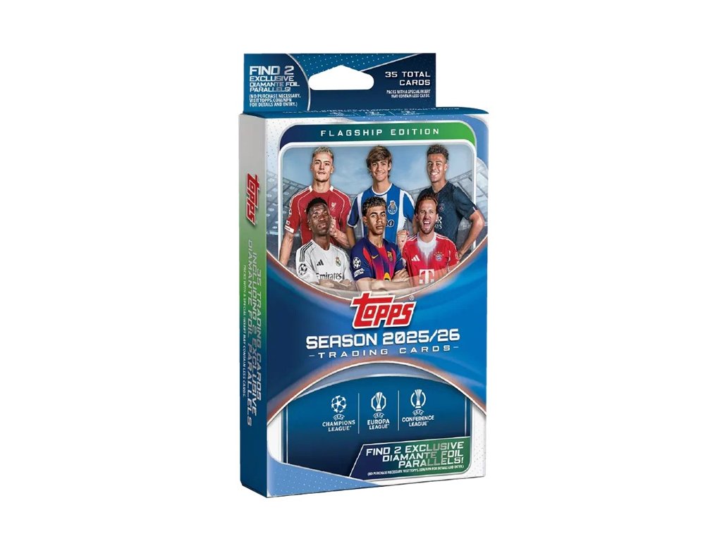 Tento Hanger Box obsahuje 35 náhodných kariet zo sady Topps 2025/26 Flagship Edition.