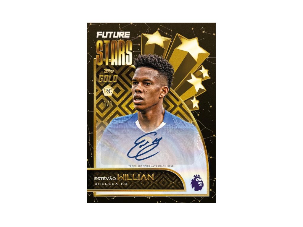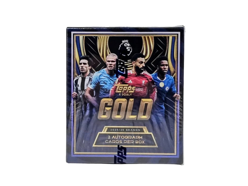 Topps Premier League Gold 2025/26 je prémiová séria zberateľských futbalových kariet oslavujúcich najväčšie hviezdy a legendy Premier League. Každá karta je zdobená elegantným zlatým dizajnom od umelca Doaly a ponúka vizuálne pôsobivý vzhľad. Box obsahuje garantované autogramy a paralely, čo zvyšuje zberateľskú hodnotu.