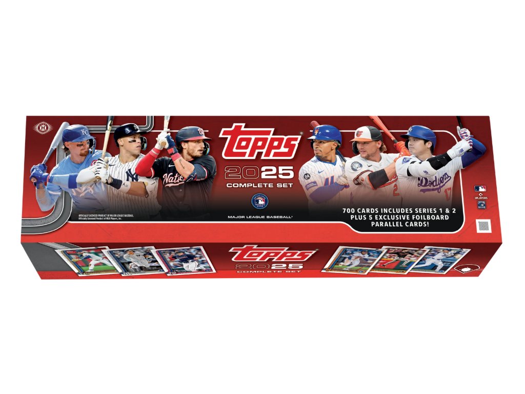2025 Topps Complete Sets Baseball – Hobby Box obsahuje všetkých 700 kariet zo Series 1 a 2 plus troch SP nováčikov.