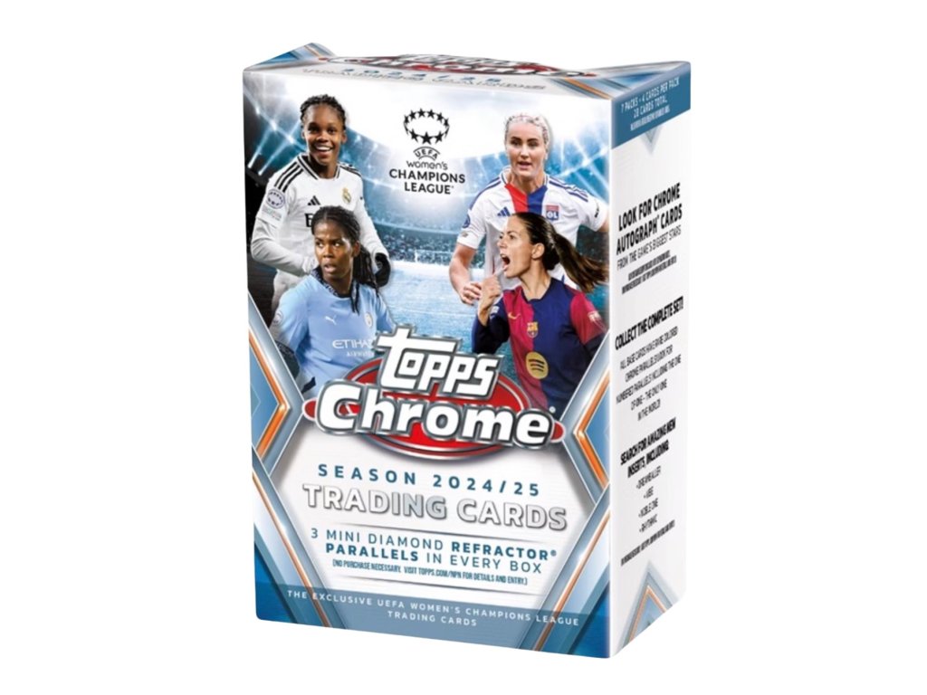 Tento Blaster Box obsahuje 7 Booster balíkov zo sady Topps Chrome 2024/25 - Womens Champion League.