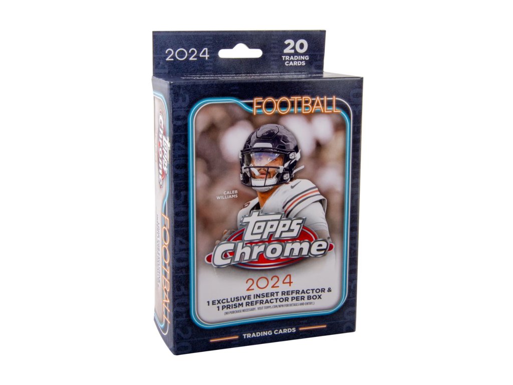 "Returning to the field" Topps Chrome Football makes its return nearly 10 years later! 2024 Topps Chrome Football is officially back and it's time for Kickoff. 2024 Topps Chrome returns with the top rookies, Best Vets and Legends of the Game. Look for the top stars in this loaded 300 Card-base set. Look for Superfractor 1/1s of the best players in the league. 20 Cards Per Box