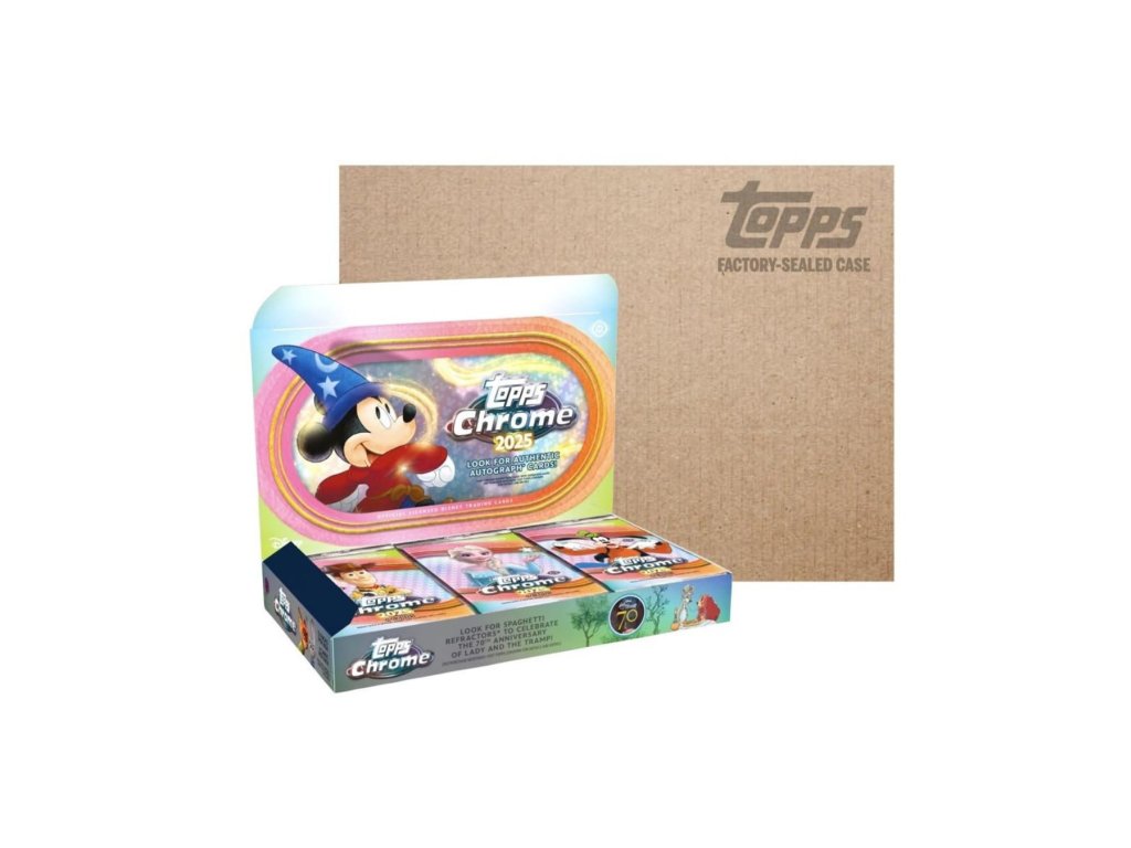 Hobby Box Case obsahuje 12 hobby boxov série Disney Chrome 2025, pričom každý box ponúka šancu na podpisové a sketch karty.