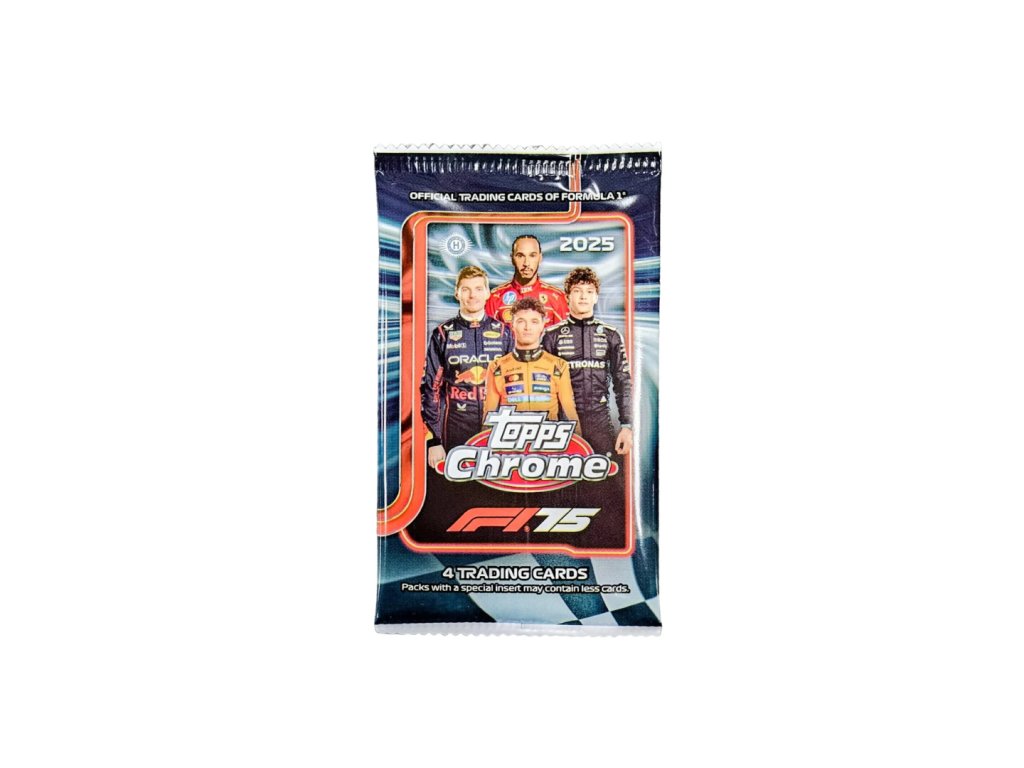 Topps 2025 Chrome F1 Formula 1 Hobby Pack je oficiálny hobby balíček z prémiovej série Topps Chrome F1 2025. Každý balíček obsahuje 4 karty s kartami najlepších jazdcov, tímov a legendárnych motívov Formuly 1. Balíčky ponúkajú šancu nájsť autogramy, paralely a insert karty, ktoré potešia každého zberateľa.