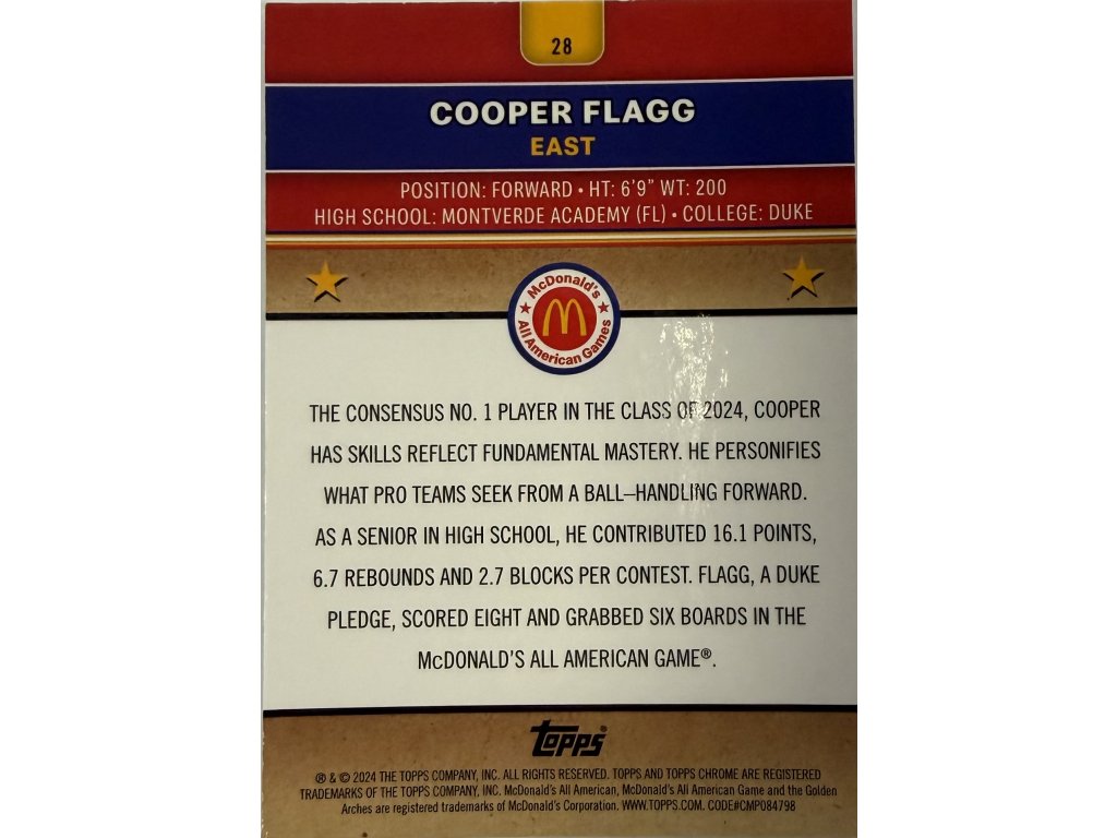 Topps Chrome - Cooper Flagg - 28