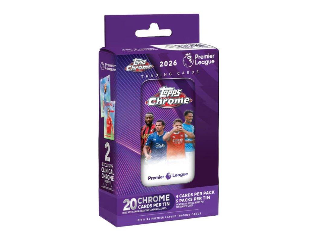 Štýlové balenie Topps Chrome Premier League 2026 Tin prináša prémiový chrome zážitok v praktickej kovovej krabičke. Ideálna kombinácia pre zberateľov, ktorí chcú nielen kvalitné karty, ale aj atraktívny úložný box.