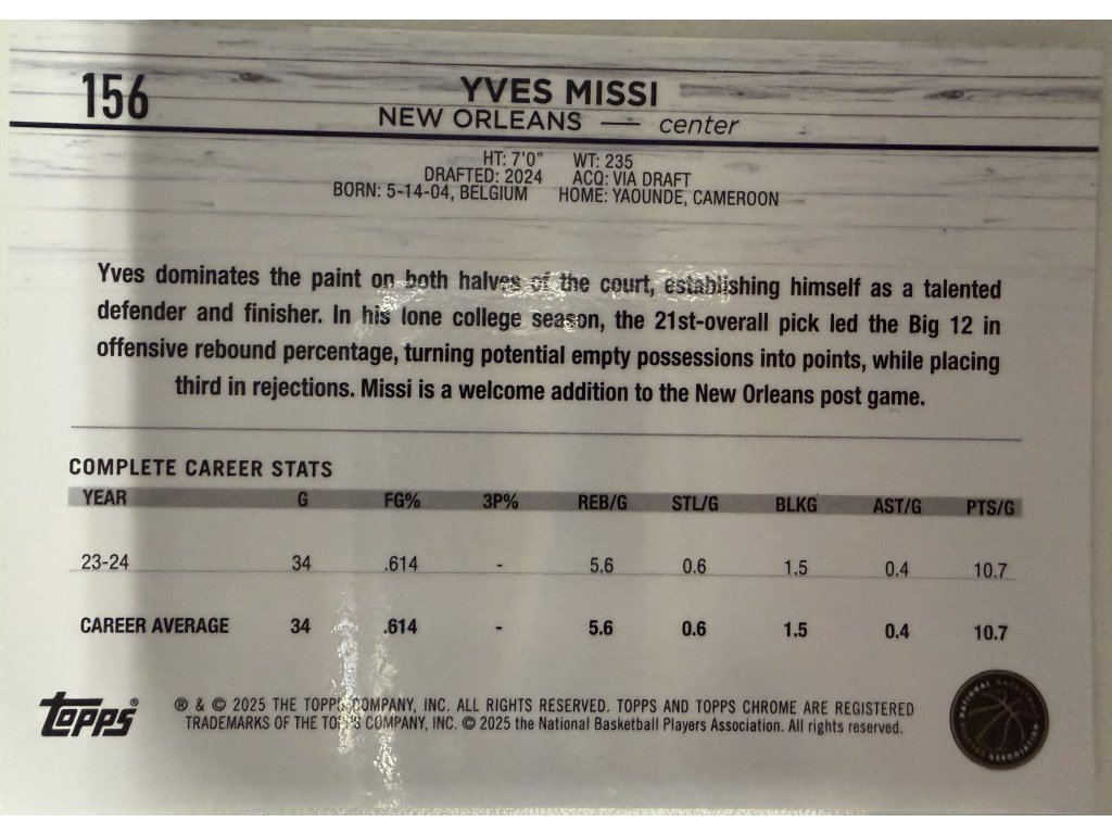 Topps Chrome - Yves Missi - Limit 42/50 - Rookie - Geometric